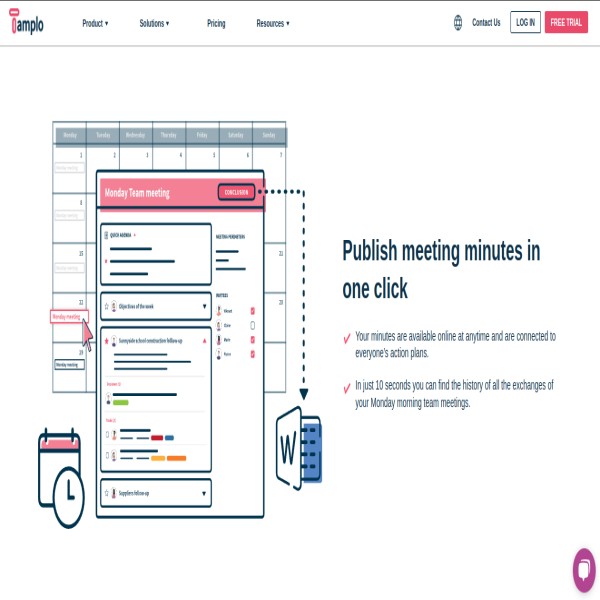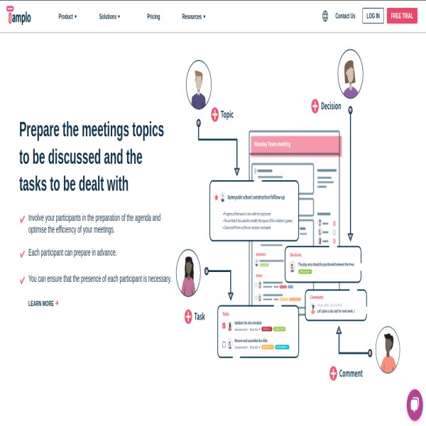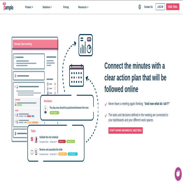 Tamplo is a Meeting and Project Management web application. Tamplo deals with Meeting creation with agenda having single and sequential meetings. Meeting agenda provides information for discussion with project tasks and provides Minutes of meeting to invitee after completing the meeting. It also provides customizable structural project management with phase, user story, templates, files, workload for the team.